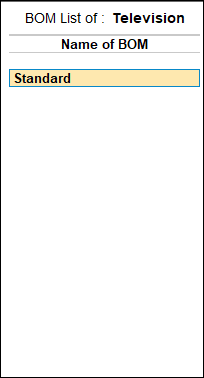 - Under Name of BOM specify component list name as Standard and press enter to view Stock Item Components (BOM) screen.